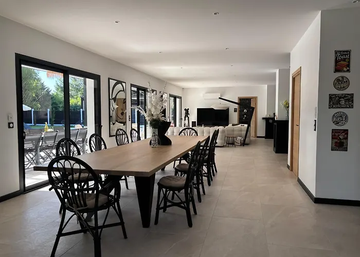 Gästerna kan äta middag på restaurangen Restaurant LE CLUB, som ligger mindre än 1 km från den här villan. Den närmaste busshållplatsen är Gujan-Mestras - Golf Route des Lacs, belägen på gångavstånd från boendet.